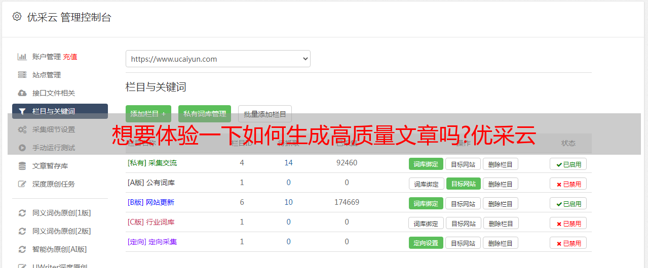 优采云是一个强大而易用的AI学习工具:它集高效、便捷、易学于一体!想要体验一下如何生成高质量文章吗?快来www.ucaiyun.com试试吧!