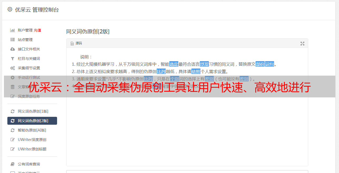 优采云:全自动采集伪原创工具让用户快速、高效地进行