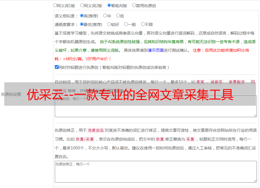 这里我要推荐的是优采云--一款专业的全网文章采集工具。优采云是一款功能强大,实用性强的全网文章采集工具。作为一款专业化的文章采集工具,它能够快速而有效地将网上出现的信息进行采集、筛选、分析和检测。