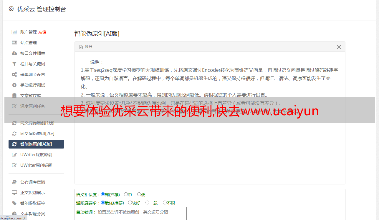 此外,优采云也能够快速地将大批量原始内容进行整理优化,并提取出相应的关键词、图片和信息。此外,这款工具还能根据用户场合和要求,使用AI算法对内容进行分析与处理。