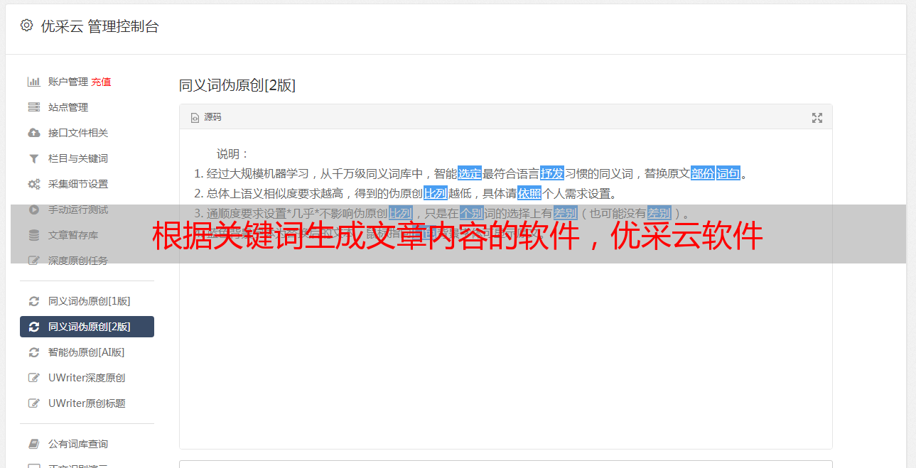 优采云软件提供了一系列创新性的功能,可以根据用户提供的关键词快速生成相关文章,并且能够根据不同类型的关键词进行定制化设置,以保证用户所生成的文章内容准确性和正确性。