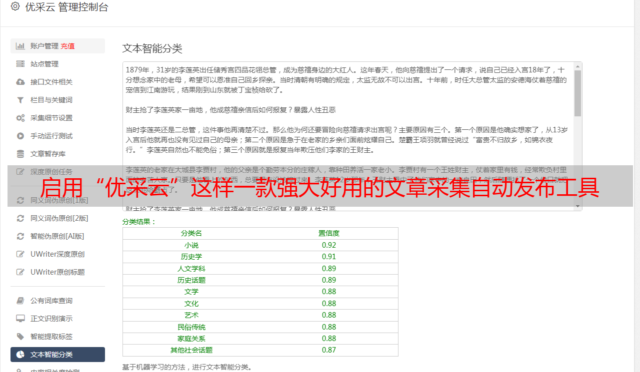 启用“优采云”这样一款强大好用的文章采集自动发布工具