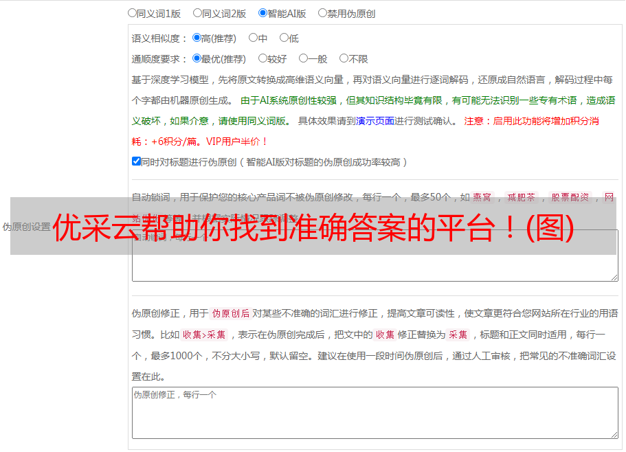 优采云就是帮助你找到准确答案的平台。优采云是一款具有强大功能和广泛用途的原创文章生成软件。它能够帮助各类网站快速、高效地生产大量原创文章,而且这些内容都是有价值和有效性的,能够很好地改善网站流量和评价。