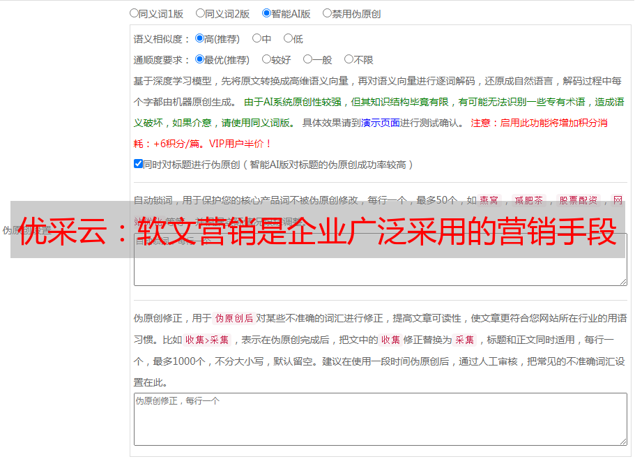 首先,作为一款优秀的软文生成工具,优采云能够根据用户所要求生成特定关键词密度且平衡性、流畅性及逻辑性都很好且原创性十足的内容。这使得企业可以不用将太多时间浪费在文章写作上,而是将时间和精力投入到其他内容中去。