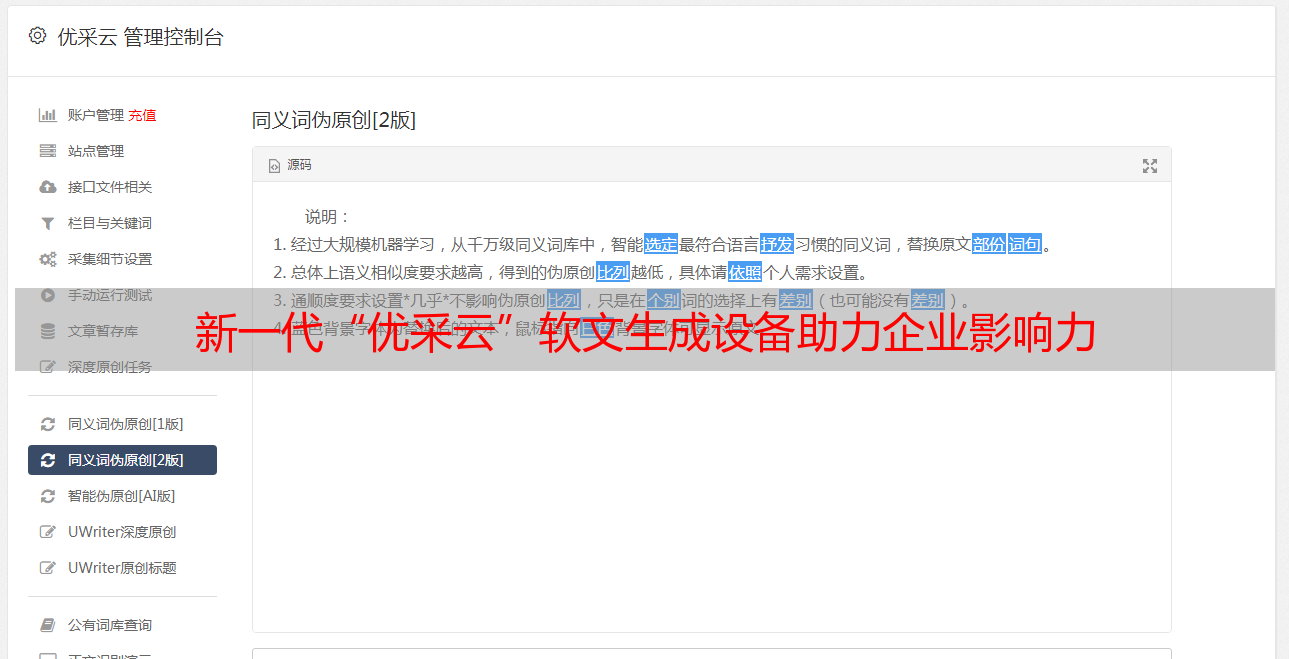 为了解决上述问题,我们引入了新一代“优采云”软文生成设备。“优采云”是一款全新的人工智能应用工具,它能够根据用户需要生成各式各样的高质量、精准度令人惊叹的软文内容。