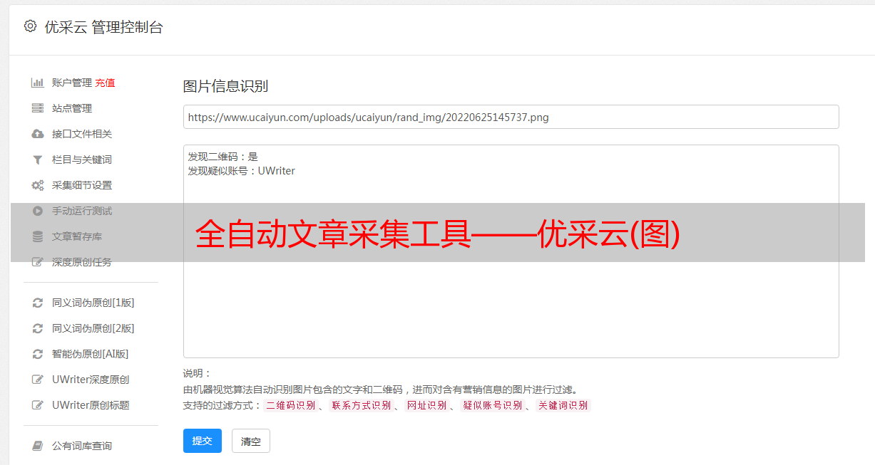 优采云是一款基于云计算技术开发的全自动文章采集工具,它能够帮助用户快速、准确地从不同来源采集有价值的文章内容。此外,它还能够根据用户需求对文章内容进行优化、分词、去重等整理工作,大大降低用户后期处理成本。