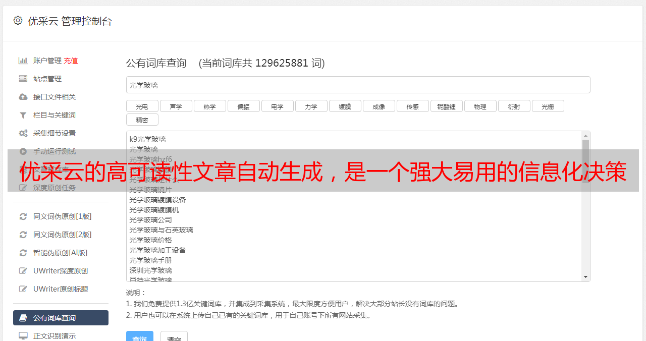 优采云的高可读性文章自动生成,是一个强大易用的信息化决策平台