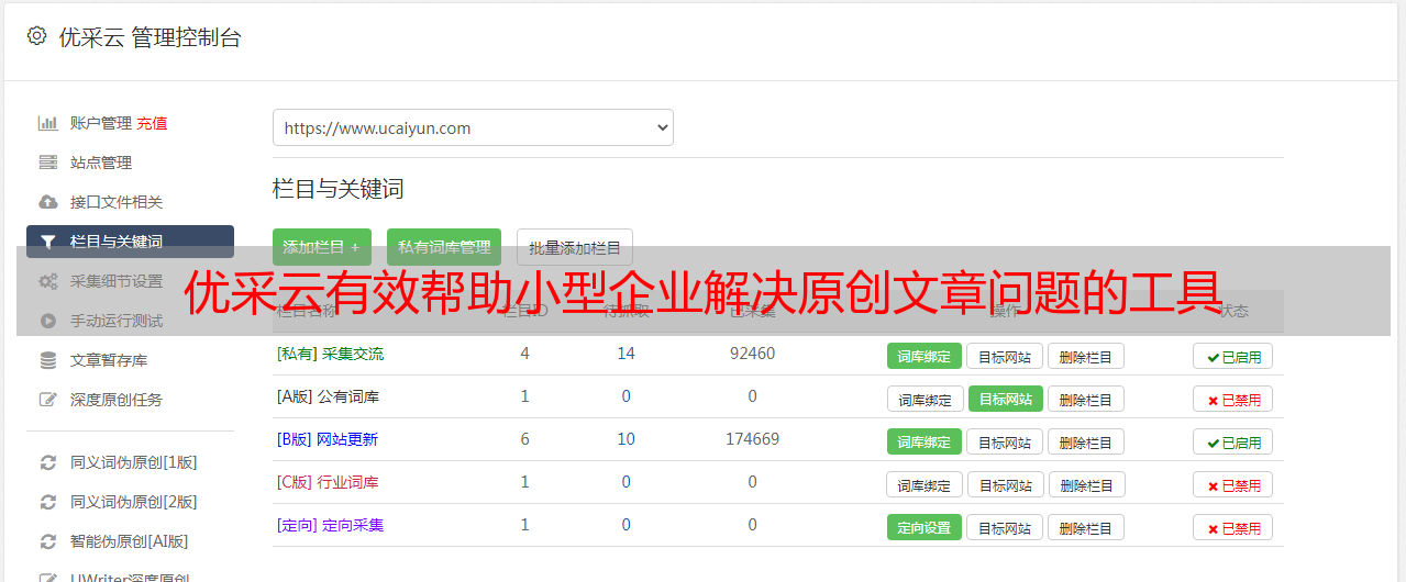 幸运的是,有一款能够有效帮助小型企业解决原创文章问题的工具——优采云。优采云是一款强大易用的内容库管理工具,可以帮助小型企业快速、低成本地建立一套原创文章内容库。使用者只需要使用一个界面上所有功能都被高效整合在一起,即可快速、准确、便捷地管理各行各业领域的原创文章。
