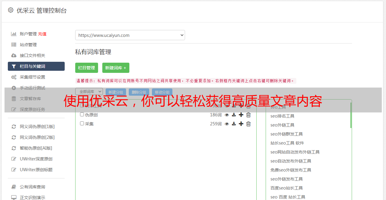 优采云是一套历时半年血泪制作耗尽心血打造出来的先进文字生成工具。如果你想要快速准确地生成高质量文章内容,请前往www.ucaiyun.com尝试一下吧!