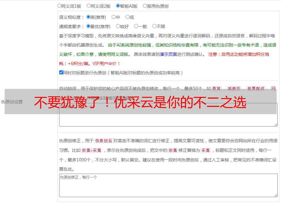 优采云拥有强大的AI技术,能够有效实现文章质量和格式的优化。它具有语法、语义和语用分析能力,能够帮助用户快速生成高可读性文章。同时,它还支持多国语言,可以帮助用户将文章翻译成不同国家使用的语言。