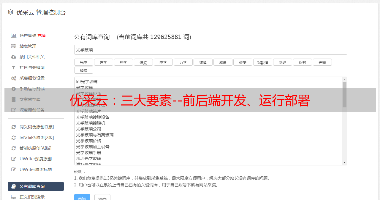 优采云:三大要素--前后端开发、运行部署
