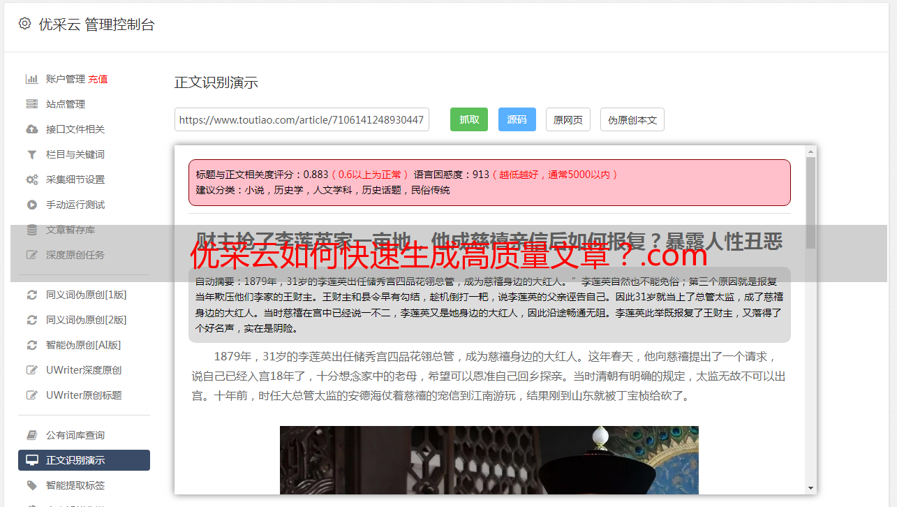 优采云如何快速生成高质量文章?.com