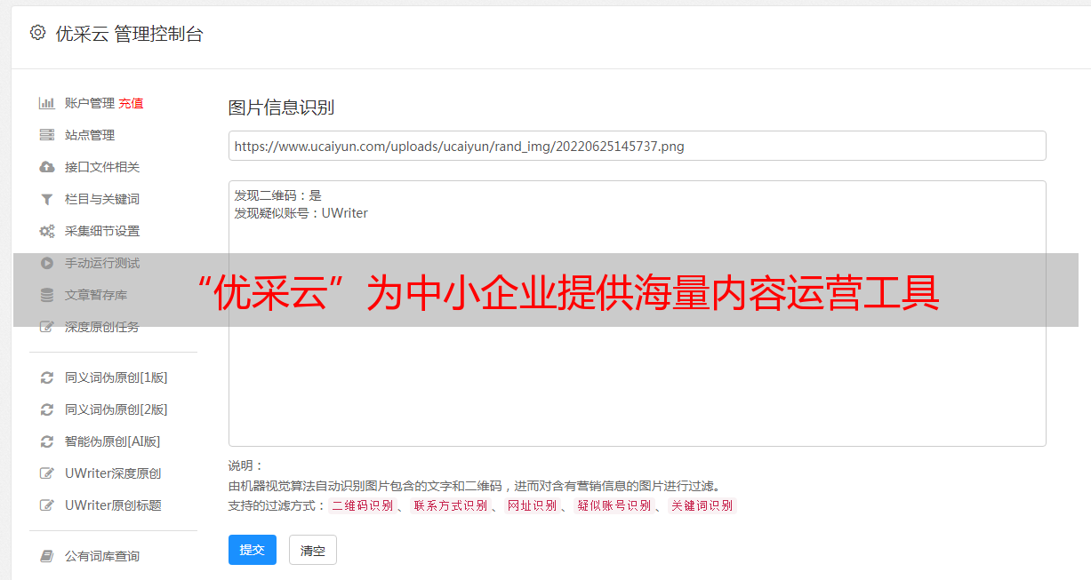 “优采云”是一款基于SaaS(Software as a Service)理念打造出来的一款内容运营工具。该工具采用了团队协作方式来整合内容资源,集写作、策划、评审、发布、测试、数据分析等多项功能于一体。使用“优采云”后,不仅可以大大减少原创文章团队成员之间的协作工作时间,还能够保证原创文章的数量和质量。对此,优采云也为我们提供了一套海量的内容库,包含行业信息、新闻动态、市场情况、行业分析、市场竞争、品牌宣传等多项内容。使得我们可以根据不同行业需要快速生成内容。
