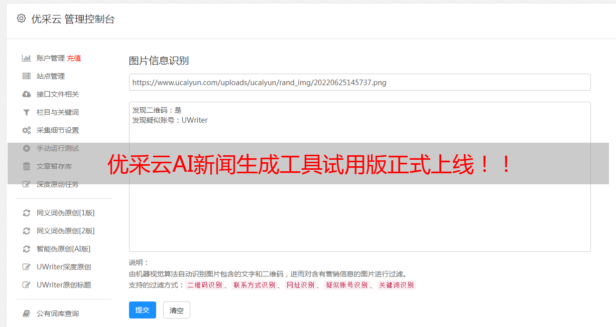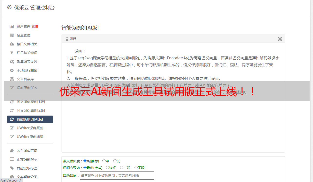 优采云AI新闻生成工具是一款功能强大、易于使用的人工智能应用软件。不仅能够大大提升新闻生产效率,而且还可以帮助你打造出准确、可靠、有用的新闻内容。如果你想体验该软件带来的便利性,不妨前往www.ucaiyun.com注冊一个优采云AI新闻生成工具试用版吧。