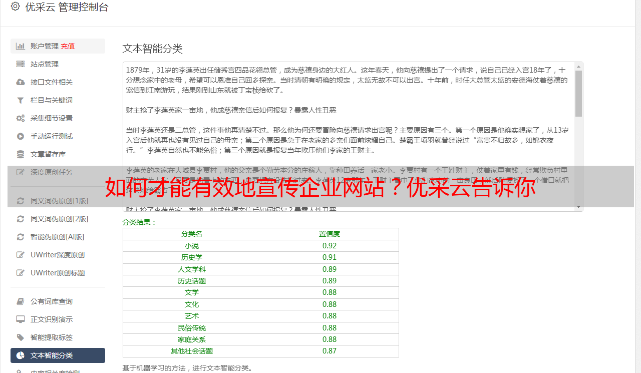 那么,如何才能有效地宣传企业网站呢?优采云——一款强大而便捷的软件,将帮助你打造出一个强大而精彩的网站。它拥有众多特性,可以帮助企业高效地实现企业文章的创作、发布、宣传、推广的整个过程。