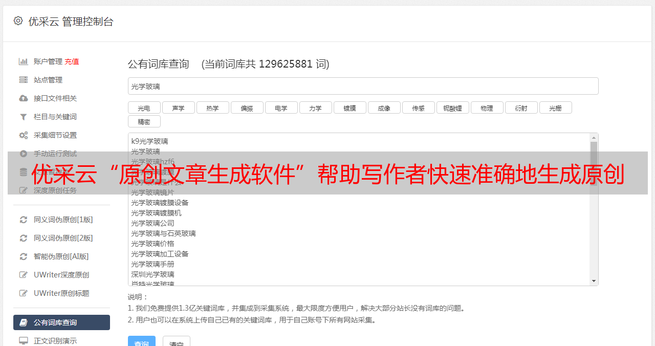 优采云“原创文章生成软件”帮助写作者快速准确地生成原创