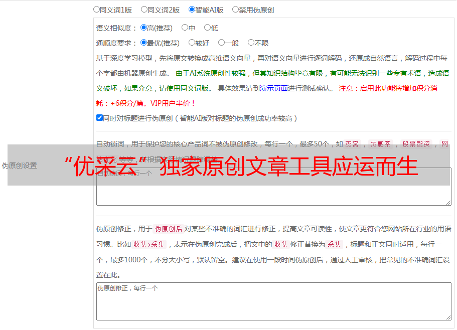 在这样的情况之下,“优采云”独家原创文章工具应运而生。“优采云”是由南宁市迈思信息科技*敏*感*词*开发的一款用于创作优质原创内容的SaaS软件。该软件通过整合*敏*感*词*资料库、行业语义、相关数据库等多方位来支撑用户创作出高品质、吸引人眼球的原创内容。
