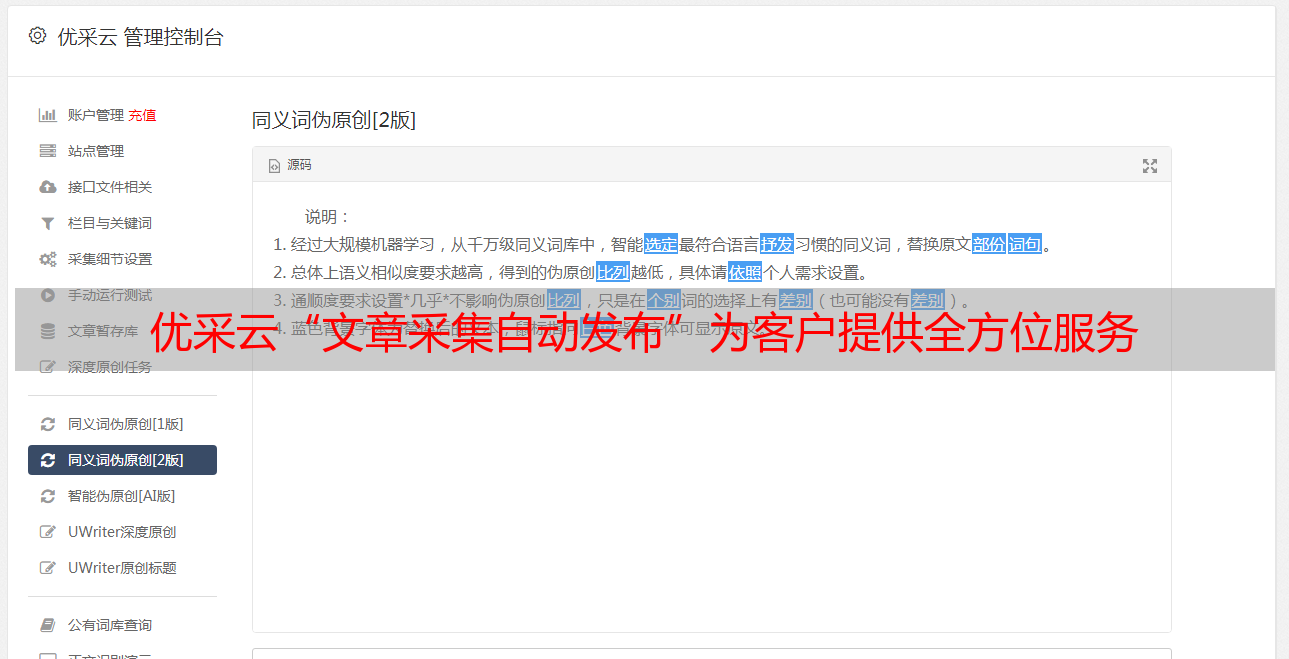 优采云“文章采集自动发布”为客户提供全方位服务