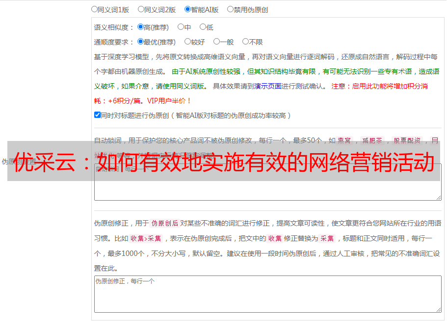 优采云 发布时间: 2022-12-31 11:51随着互联网的发展,近年来企业在网络营销中扮演越来越重要的角色。事实上,从创建网站到宣传活动,再到关键词搜索引擎优化,企业都必须做好准备,以便进入新的市场。考虑到这一点,如何有效地实施有效的网络营销活动成为当前各行各业最关注的问题。