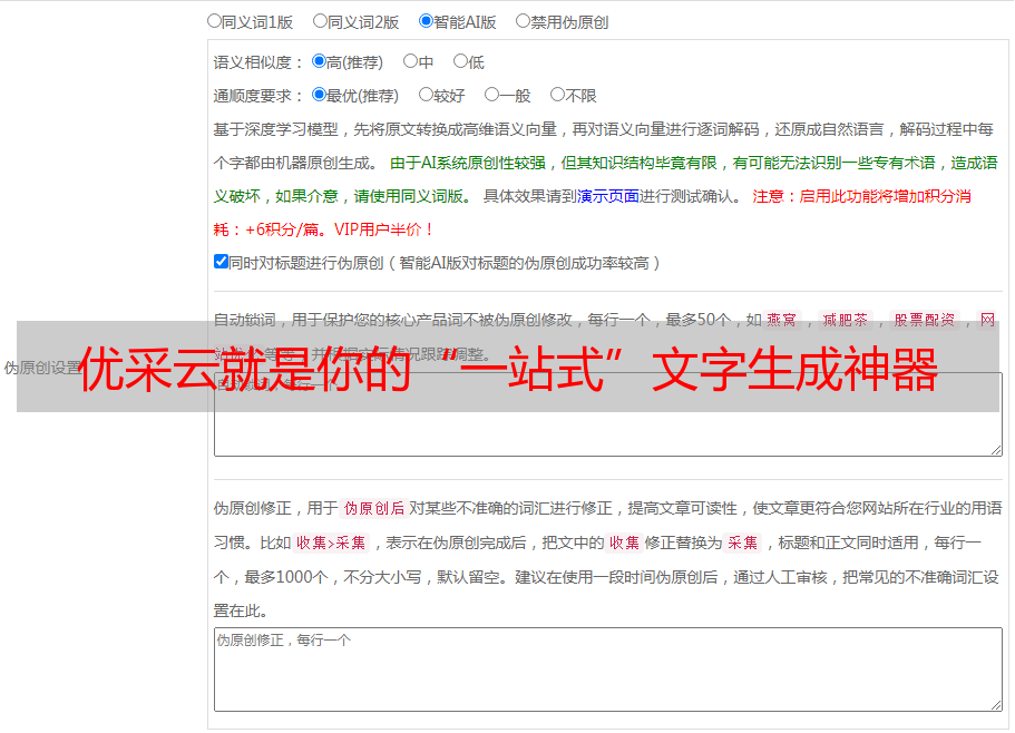 此外,优采云还有强大的文本处理功能。你可以将字符数量、单词数量、表格数据等特征均衡化,并能够将内容中的错别字进行正确校正。无论是在字数上还是在文章质量上都会有很大的帮助。总之,优采云就是你的“一站式”文字生成神器!