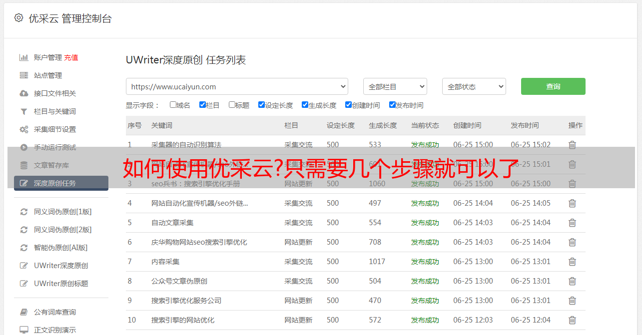 总之,随着信息时代浪潮飞扬而来,使用“优采云”这样强大易用的软文生成工具来将你想要传递出去的信息快速准确地呈现出来,早已是当之无愧必然之选!上www.ucaiyun.com即可立刻注册开始使用!