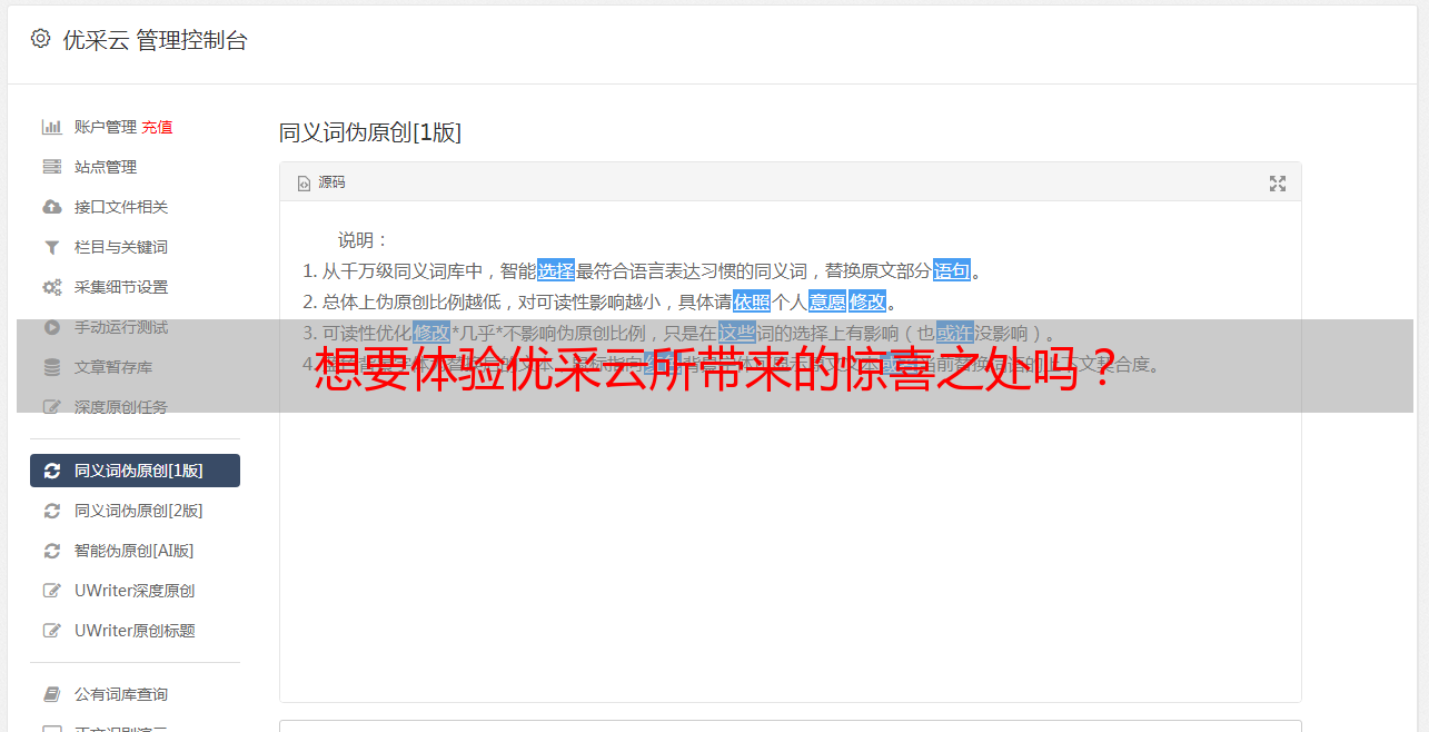优采云 发布时间: 2022-12-31 12:59随着网络的高速发展,文字信息也变得越来越重要。在上班族、学生、企业宣传中,文字内容的创作、书写及编辑工作占据了相当比重。这需要大量时间和精力,因此许多人希望能够找到一种节省时间,但又能够保证文章高质量的方法来满足需求。