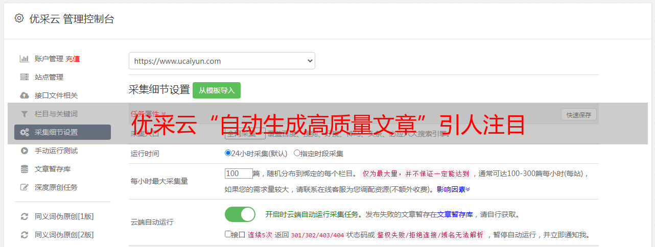 因此,如何快速而有效地创作出出众的内容已经不是问题了——!优采云“自动生成高质量文章”是一个不可多得的神奇工具。如果你想快速、有效地创作出高水平、高质量的内容,就来试试优采云吧!我们将竭诚为你服务!官方网址www.ucaiyun.com 等你来尝试!