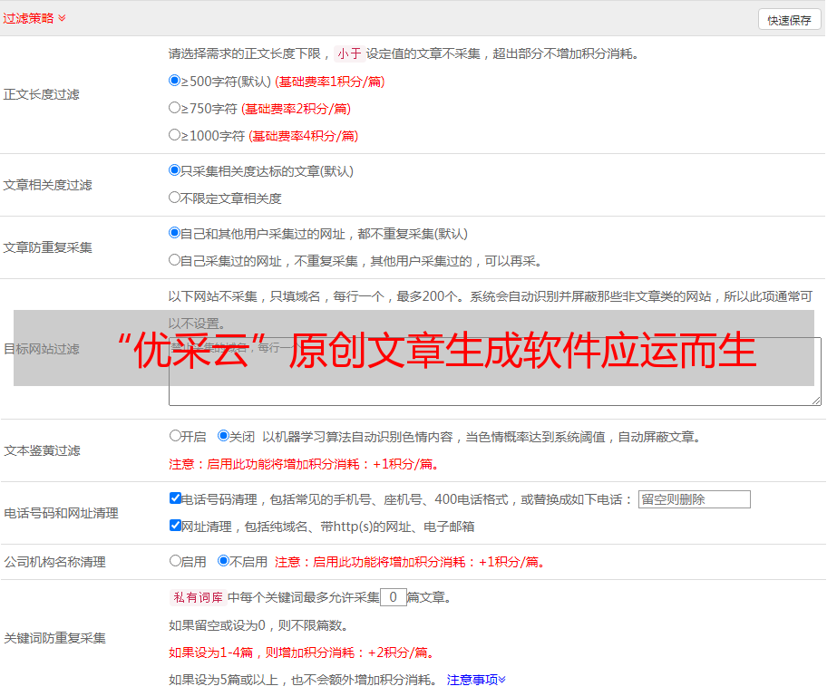 在这种情况之下,“优采云”原创文章生成软件应运而生。该软件拥有完善的AI技术体系,能够根据用户提供的关键词快速生成各类新颖的原创文章。同时,优采云也支持将文字转化为图片内容,从而使用户可以更好地利用图片来表述和传播自己的思想和理念。