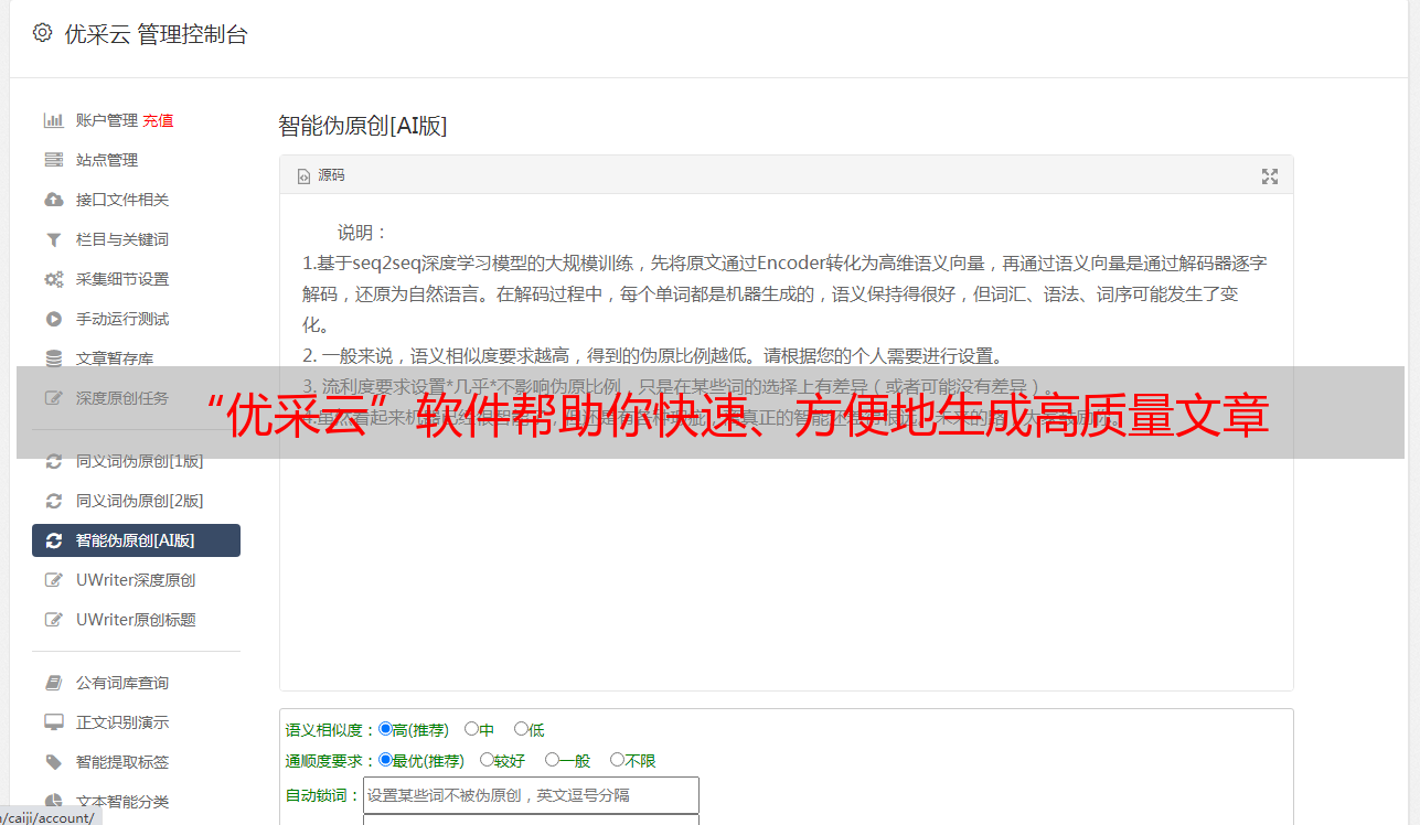 “优采云”软件帮助你快速、方便地生成高质量文章