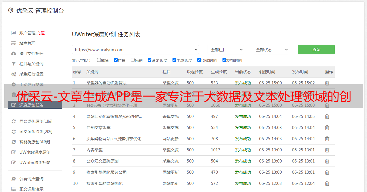 优采云-文章生成APP是一家专注于大数据及文本处理领域的创新性科技公司