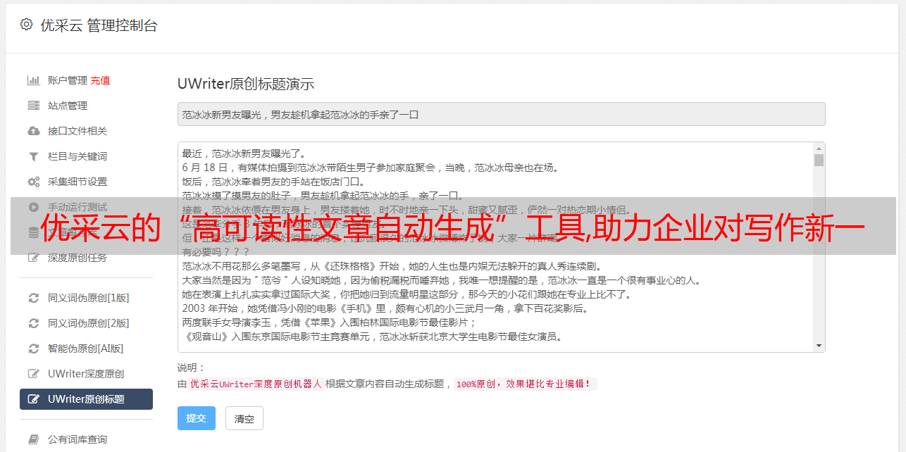 优采云的“高可读性文章自动生成”工具,助力企业对写作新一代工具的寻找