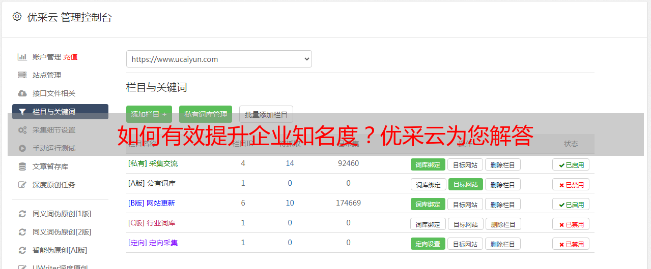 发表原创文章对于企业的影响很大,它不仅能够扩大企业的影响力,而且能够将产品或服务更好地推广出去。如今越来越多的企业都在发表原创文章,但并不是所有的文章都能够得到成功,很多时候还需要一定的工具来进行支撑。这里就推荐一款强大的文章管理软件-优采云。