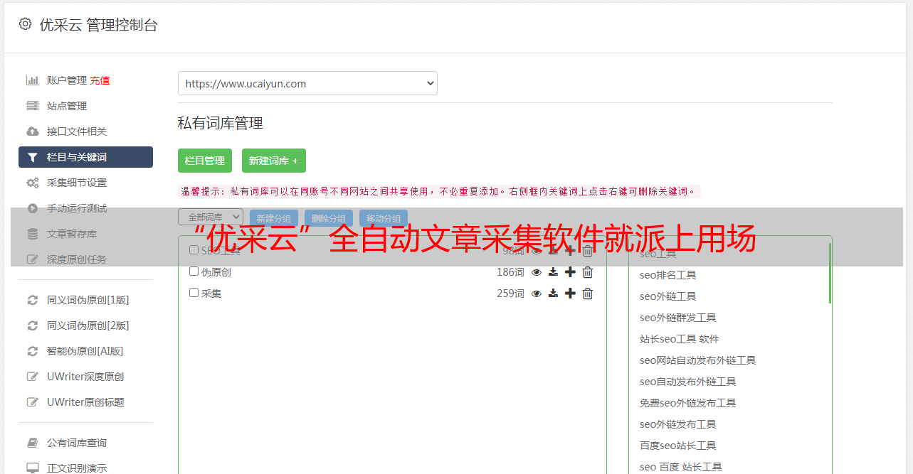 总之,“优采云”是一款强大而易用的全自动文章采集工具,能够帮助用户快速、方便地批量采集高质量、原创耐读性强、包含要素丰富的内容物。它不仅能够大大减少人工耗时,而且还能为企业注入大量内容物、扩大影响力、助力企业进行内容营销。如想要尝试使用“优采云”这一强大工具,可前往 www.ucaiyun.com 。