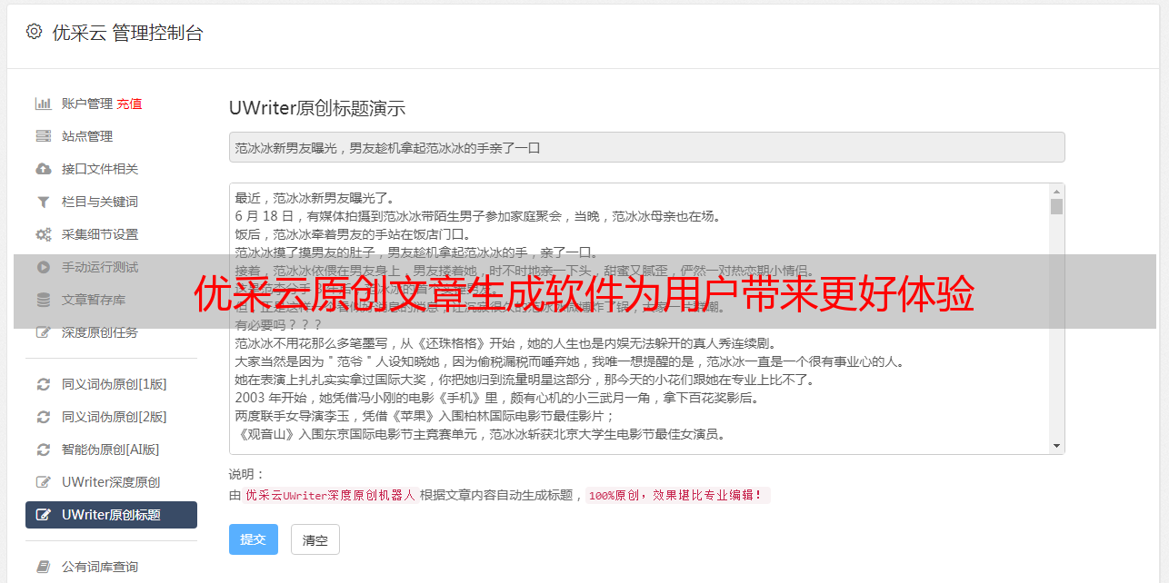 幸运的是,如今已有相关软件可以帮助我们解决这个问题。优采云是一款全新推出的原创文章生成软件,它可以帮助用户快速、高效地生成优秀的原创文章。