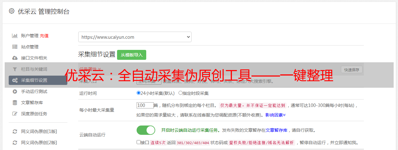 而要实现伪原创,最大的问题就是如何快速并且准确采集、加工整理大量内容,因此出现了很多采集工具和软件,如何选择合适的这样的工具就成为了很多人面对采集内容时所需要考虑的问题。在此背景下,我们引入一款新型的全自动采集伪原创工具——优采云。
