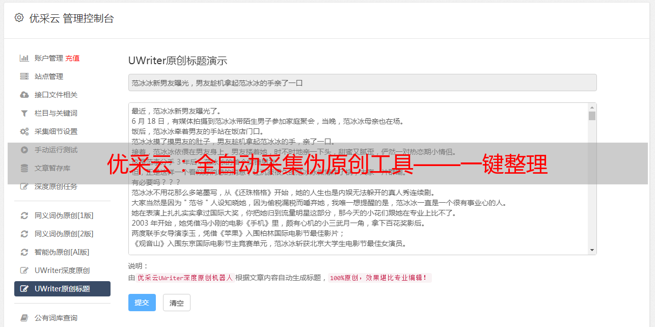 优采云:全自动采集伪原创工具——一键整理