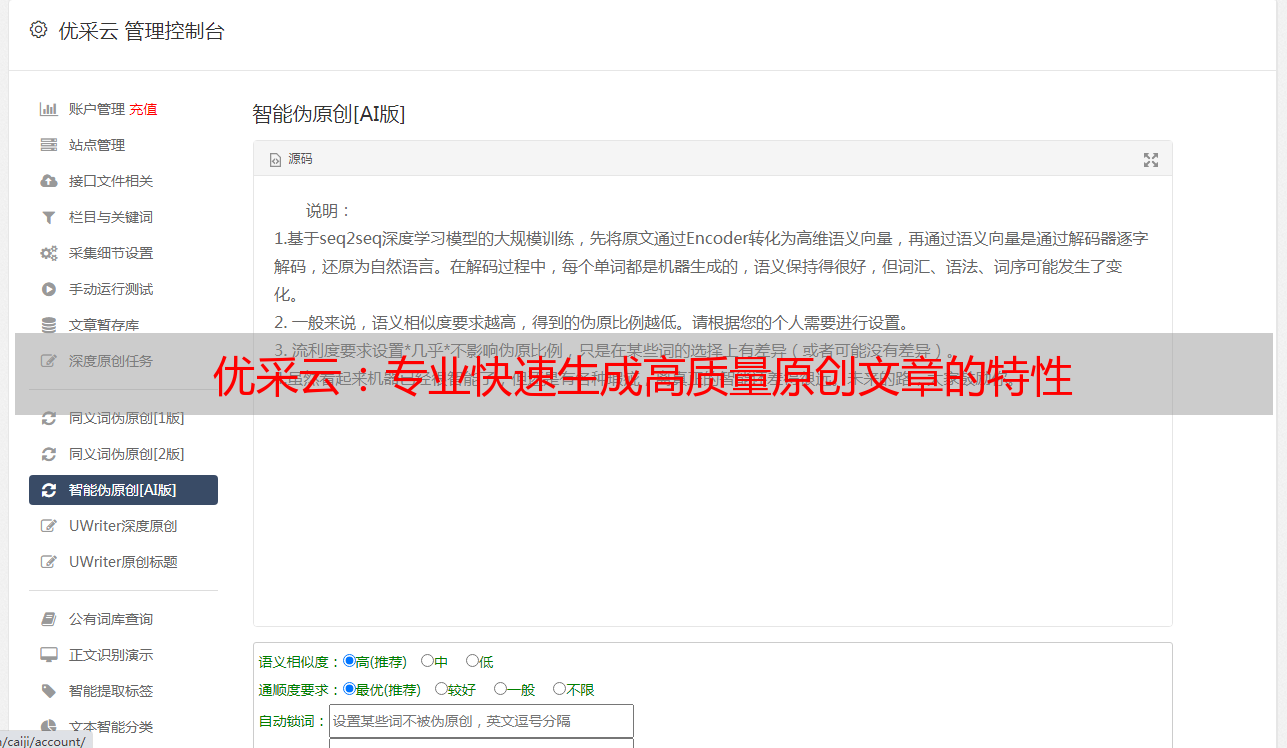 3.先进的语法引导:优采云可以根据不同语法特征实现对句子核心语义的理解,使用不同方式表达相同含义,保证文章衔接流畅、布局丰富、句式多样。