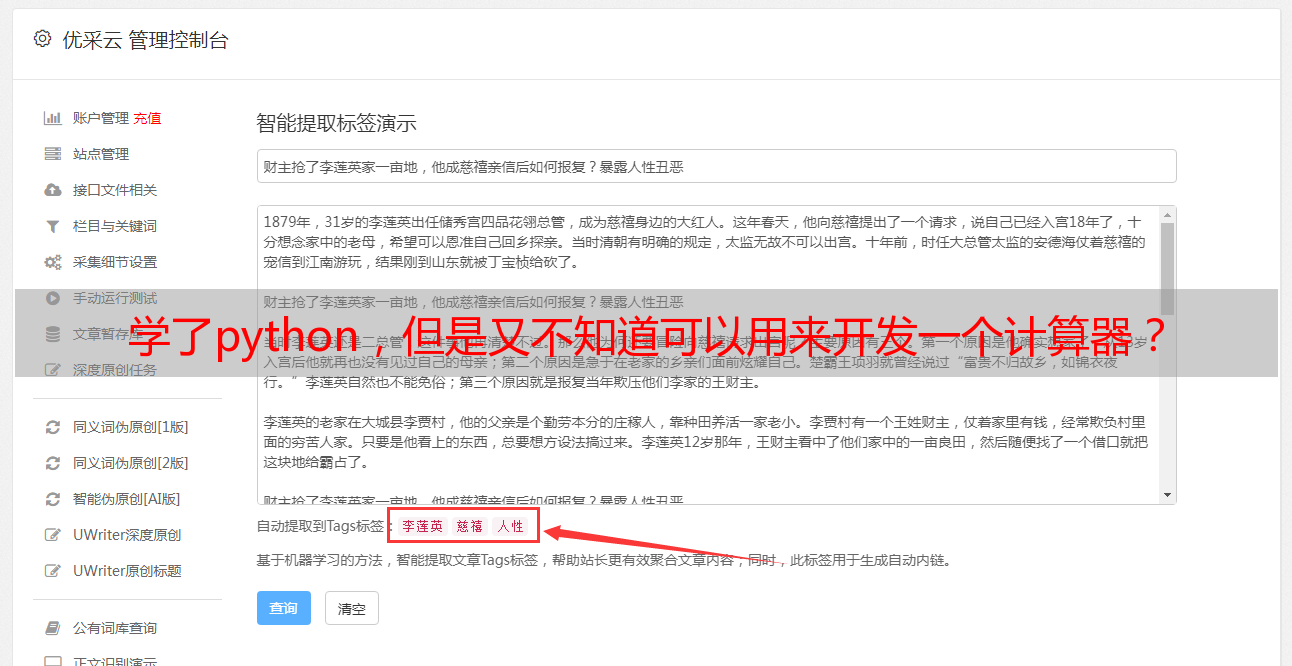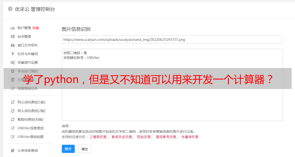 优采云 发布时间: 2021-06-03 01:26学了python,但是又不知道可以用来开发一个计算器?