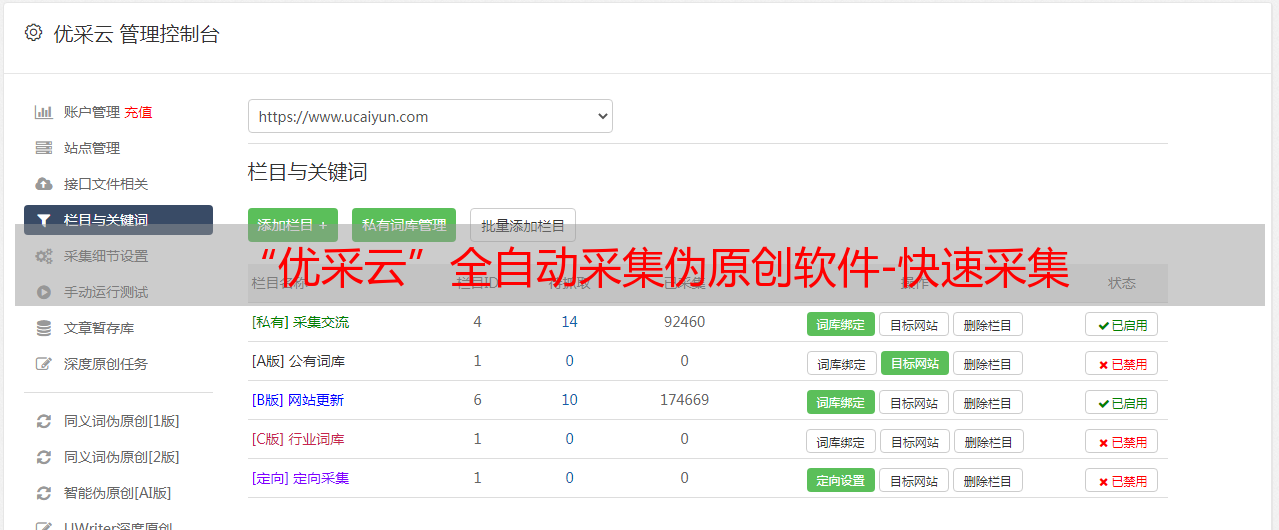 优采云是一款功能强大的全自动采集伪原创软件,它在网上采集的思想、新闻、数据库和图片等各种内容,并通过其独特的“翻译+随机+打散+干净”四步法,将原生态内容变成看上去是原创内容的伪原创文章。此外,它还可以直接将得出的文章保存为Word文档或HTML文件,方便用户进行后期处理和使用。