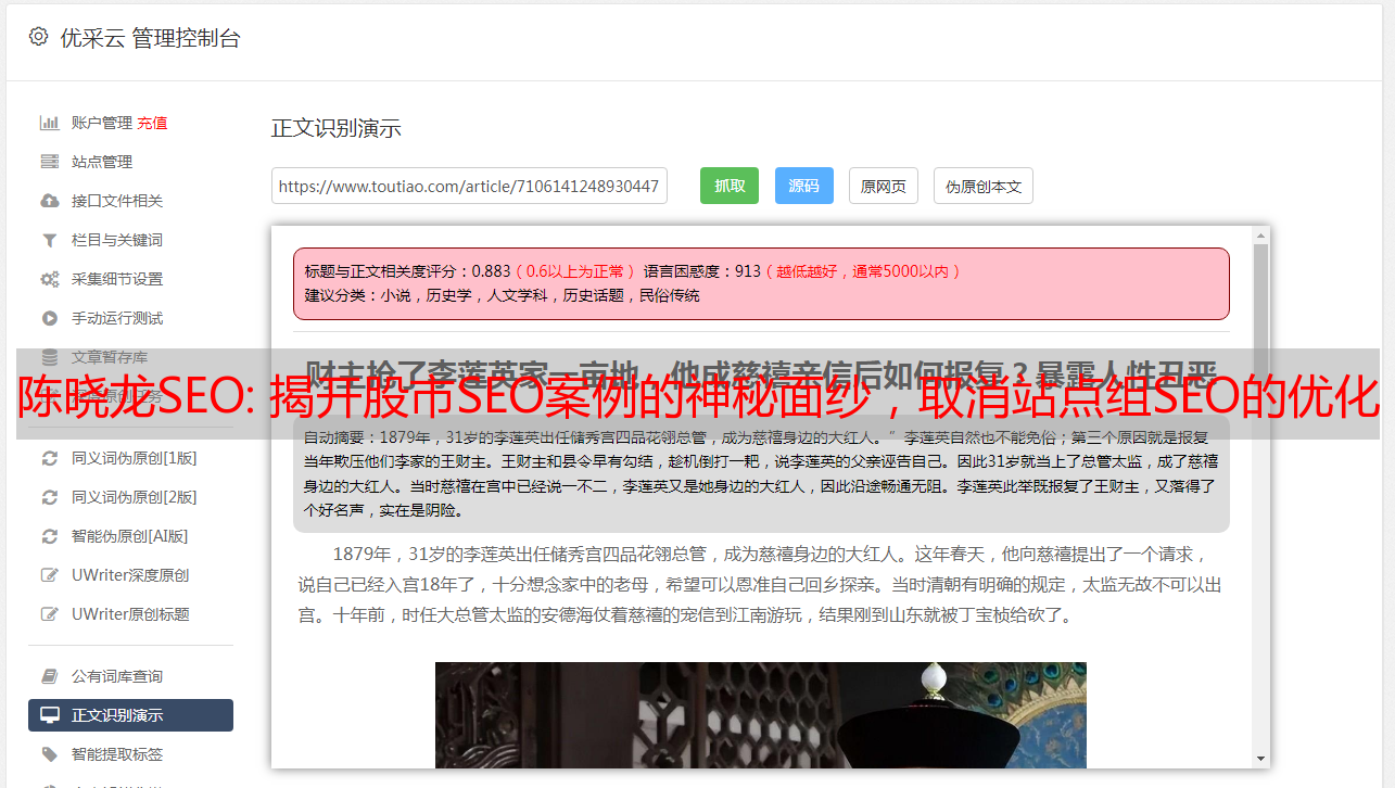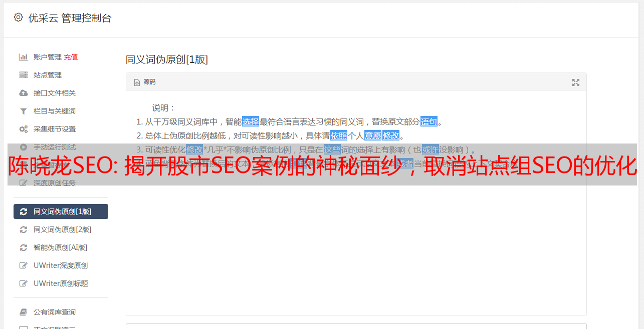 陈晓龙SEO: 揭开股市SEO案例的神秘面纱,取消站点组SEO的优化