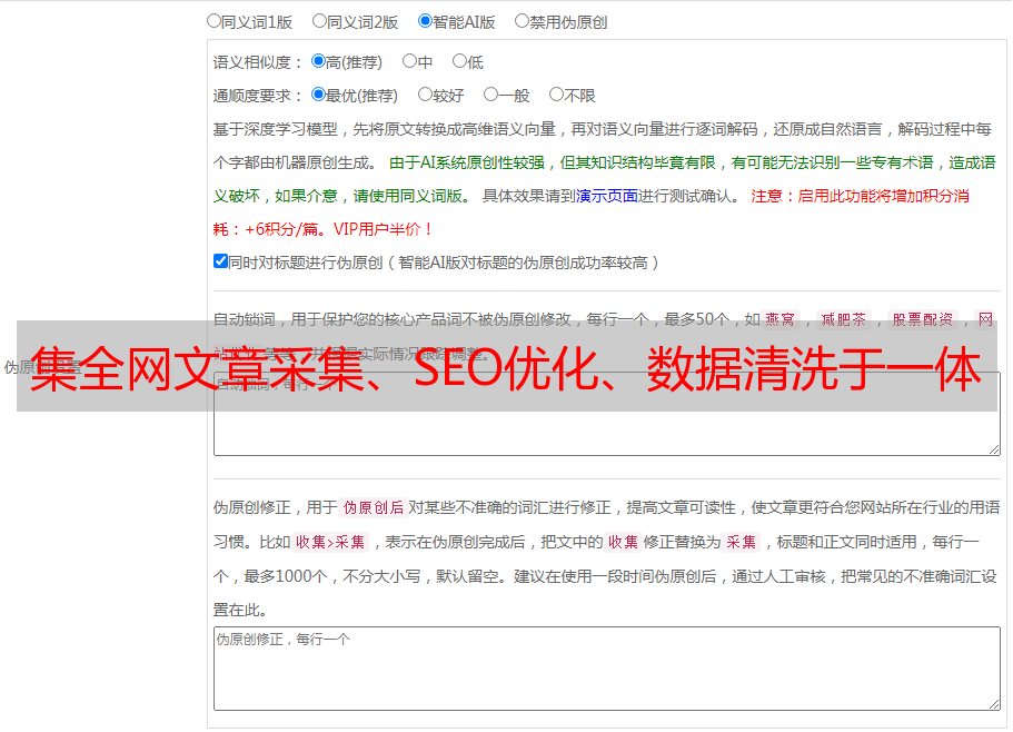 集全网文章采集、SEO优化、数据清洗于一体