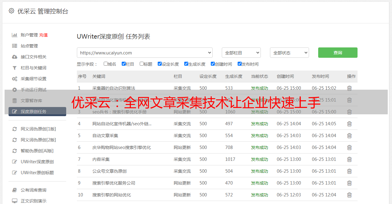 优采云是一款面向企业的全网文章采集软件,旨在帮助企业快速、准确、方便地采集全网内容,有效提升企业新闻发布和内容创作效率。