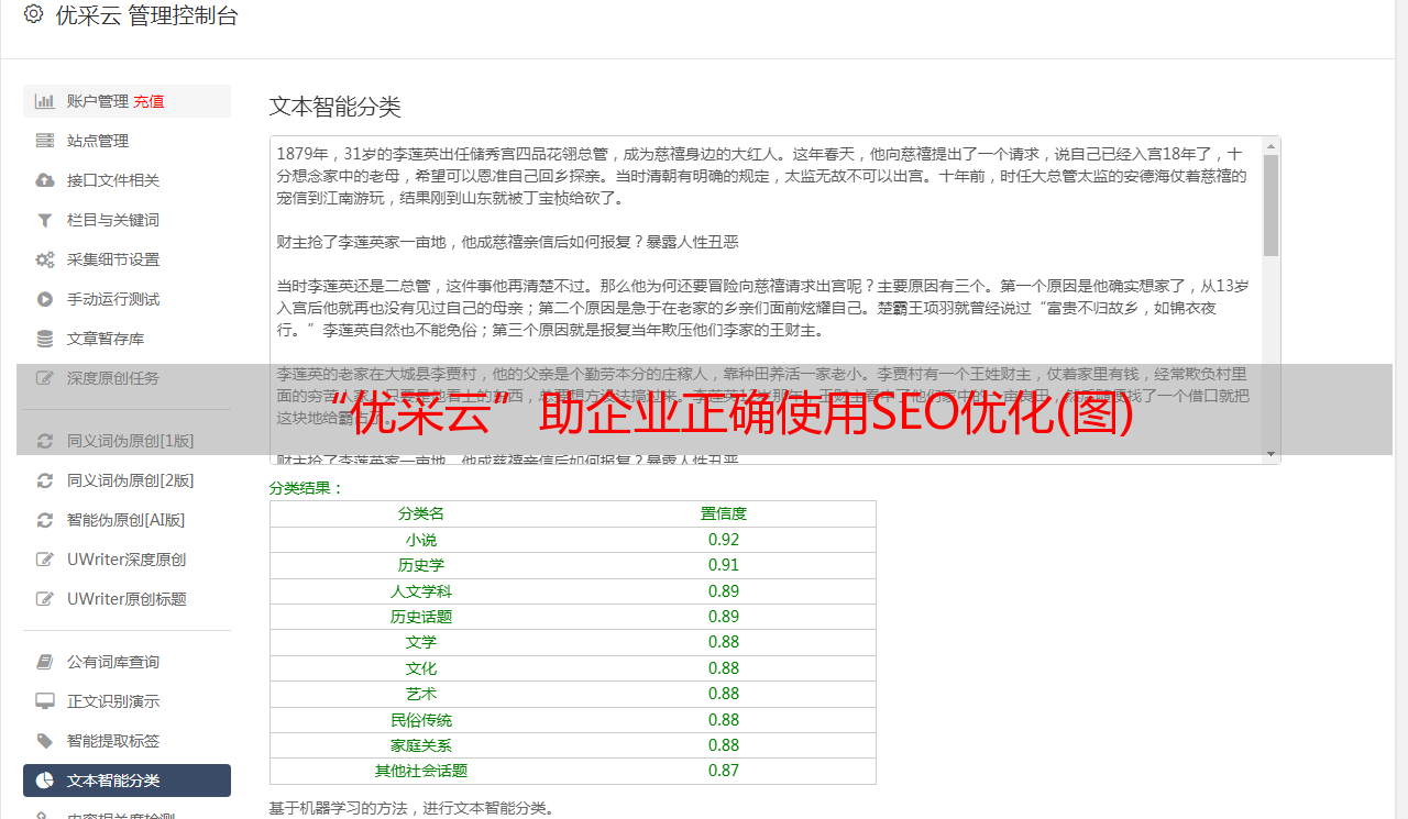 为了帮助企业正确使用SEO优化,UCaiyun公司开发了一款名为“优采云”的软件。该软件集成了多项SEO优化功能,能够有效地帮助用户进行SEO优化工作。例如,该软件可以帮助用户监测并分析关键词和权重、测试网站速度、监测外部链接、监测竞争对手、生成XML地图、生成Robot文件、生成HTML标题和Meta标记、监测图片Alt标记和文字标记。此外,该软件还可以帮助用户分析SEO数据并改进SEO工作。