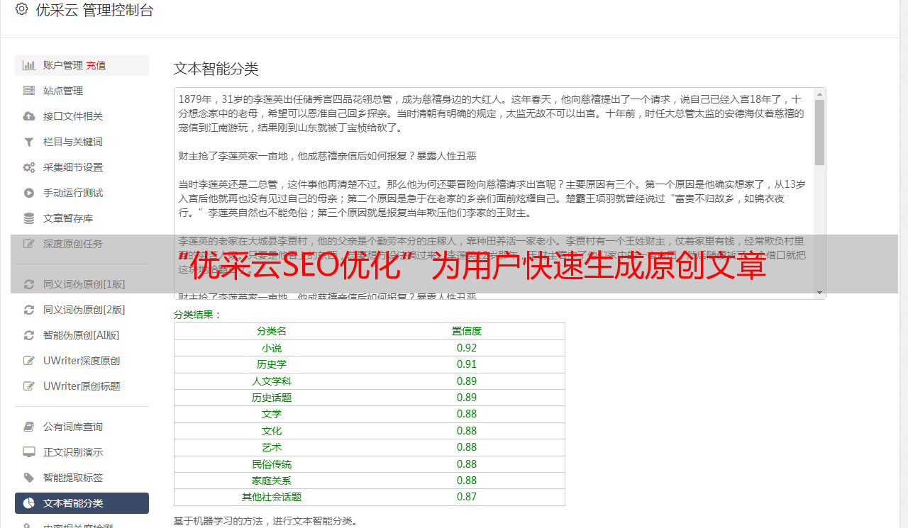 总之,“优采云SEO优化”是一款十分好用、易使用并具有强大可扩展性的原创文章生成软件。想要体验它强大而便捷的功能,只需前往它官方网站www.ucaiyun.com即可。