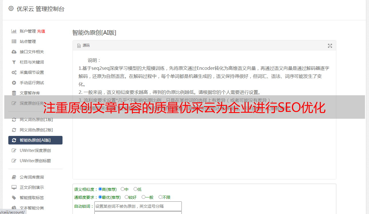 注重原创文章内容的质量优采云为企业进行SEO优化