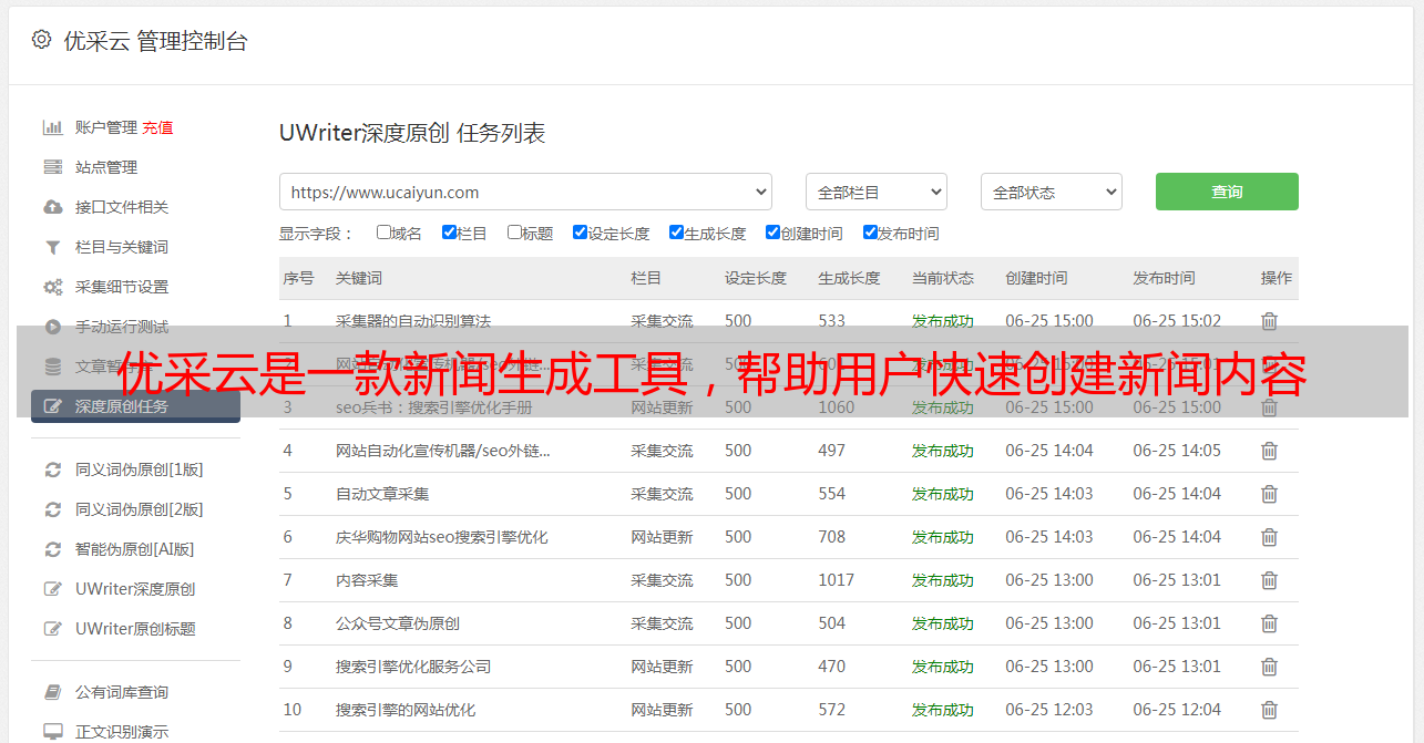 优采云是一款新闻生成工具,帮助用户快速创建新闻内容