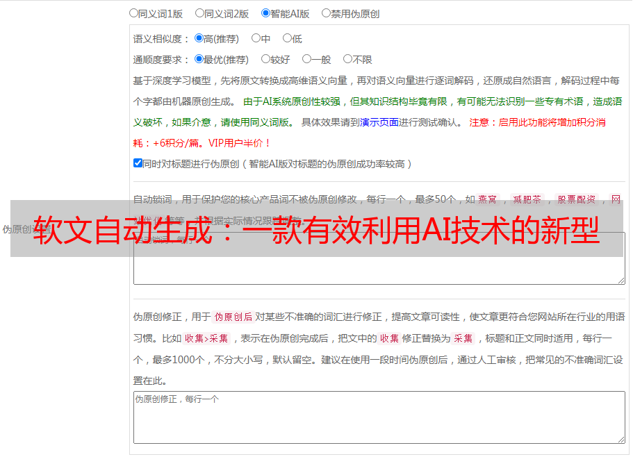 总而言之,软文自动生成是一款有效利用AI 技术的新型工具,受到了广大企业的一致好评.它不仅能够帮助企业高效地将信息上传到社交媒体,还能帮助企业快速地将信息整理、归类存储好,从而实现信息快速、准确地传递出去.作为一种AI 技术,这也是人工无法匹敌,由此看来,这对于有效解决传递信。