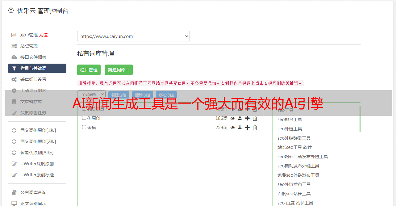 AI新闻生成工具是一款集文字合成、图片识别、语音合成等多种功能于一体的AI新闻内容生成软件。它能够根据用户输入的关键字,快速生成与关键字相关的高质量文章内容,给用户带来方便、快捷、高效的创作体验。