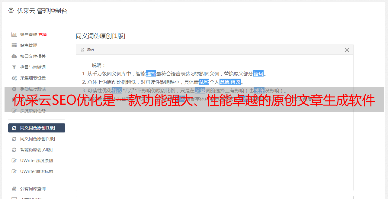 优采云SEO优化是一款功能强大、性能卓越的原创文章生成软件