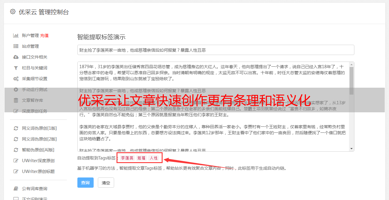 优采云让文章快速创作更有条理和语义化